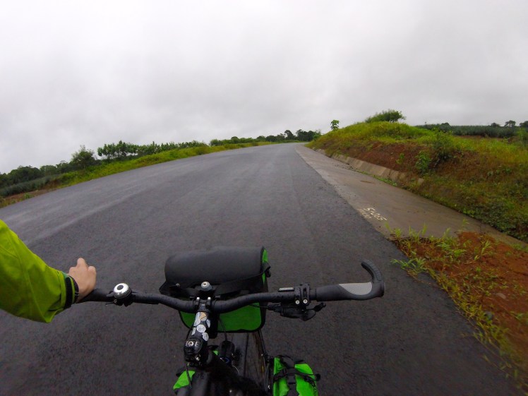 Zum Abschied öffnet der Himmel über La Fortuna am nächsten Morgen nochmals seine Pforten und übergießt mich mit Regen. Ich schwinge mich aufs Rad und rolle die ersten Meter bergab.