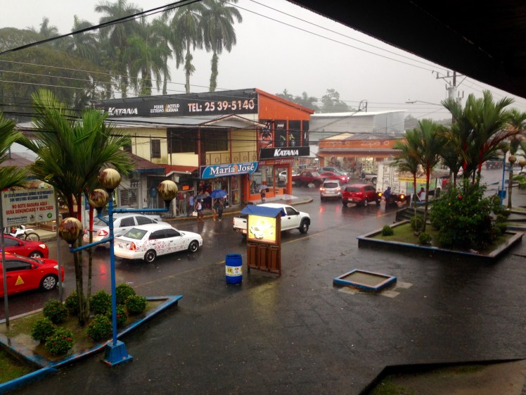 Von dort führt die Straße auf direktem Weg nach Puerto Limon an der Karibikküste und dann weiter nach Puerto Verjo de Talamanc. Bereits in La Fortuna wurde ich allerdings vor dem Verkehr auf dieser Straße und der Kriminalität in Puerto Limon gewarnt. Nach Angaben von warmshowers-Alejandro hingegen alles kein Problem. Etwas weniger optimistisch plane ich dennoch ab Guapiles, einer noch etwa 55km entfernten Stadt, einen Direktbus nach Puerto Viejo de Talamanca zu nehmen. Bis dorthin möchte ich zum Erstaunen der Dame an der Rezeption meines Hostels am nächsten Tag radeln – keine gute Idee wie sich wenig später herausstellt.